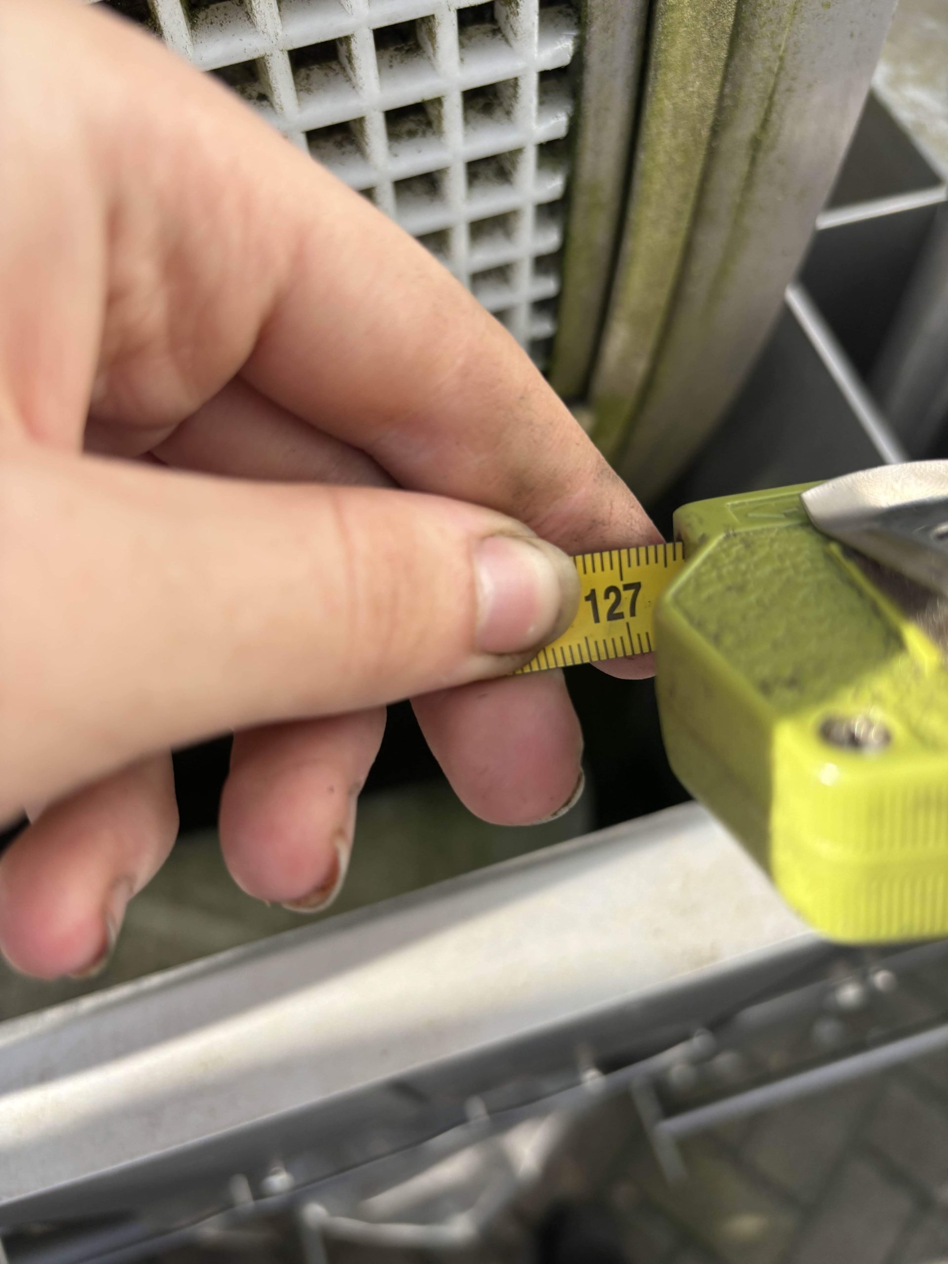 de trommle van deze zeef heeft een lengte van 127cm.
